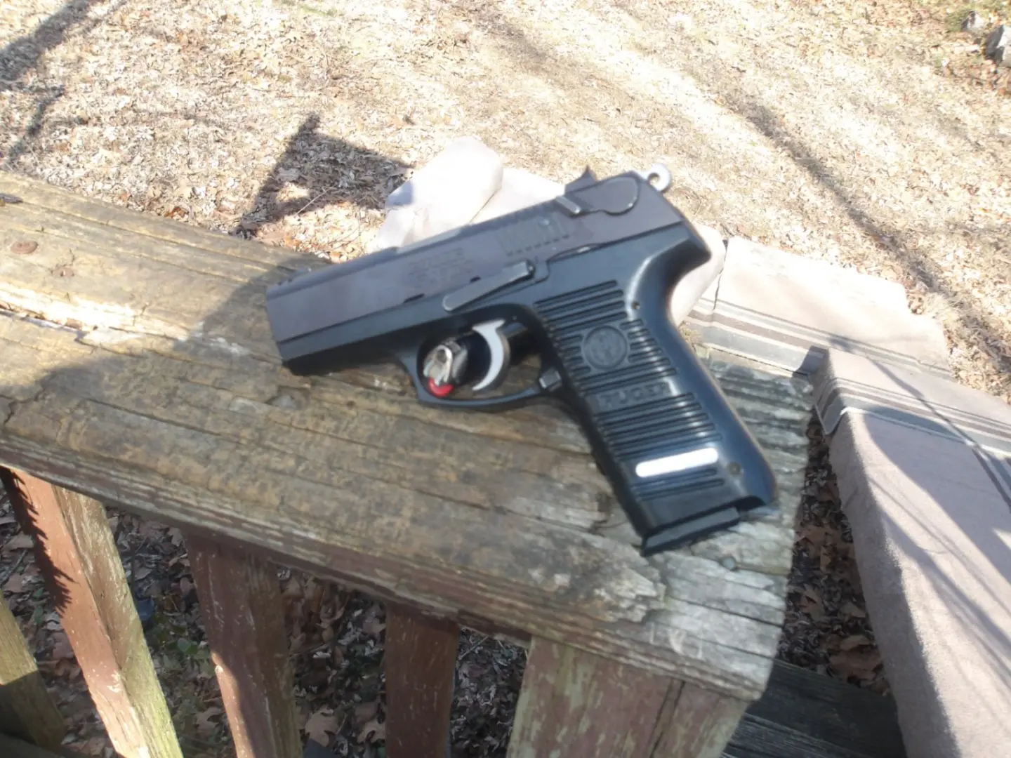 ruger 9mm full size pistol .. 15 round mag .. ambidextrous mag release and decocker .. gun in good shape, and shoots good .. $325.00 or may trade for revolver located bourbon mo .. 573-259-2184 if no answer leave message ..