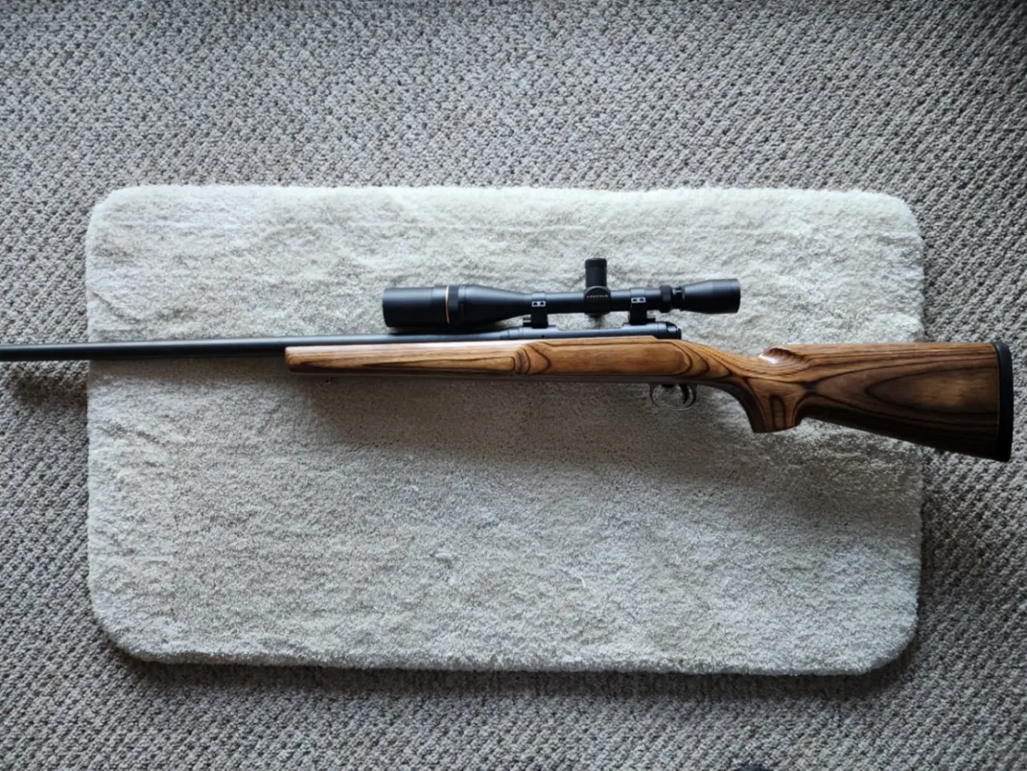 Savage model 10 Heavy bbl, 308 caliber, laminate wood stock, Leupold 6x18x40 with 1/4 min dot scope. Extreamely Accurate.
