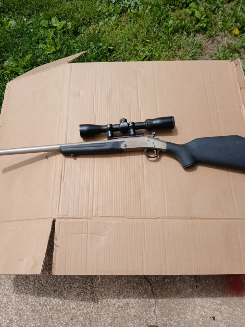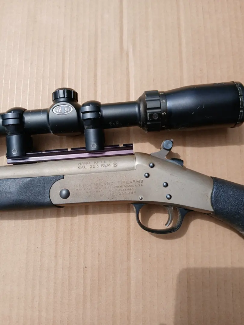 Single shot New England Arms Co. Handing Rifle 223 cal. with a 3x9 scope and hammer extension asking $375 or would consider trade for a good hand gun or a 20 guage shotgun