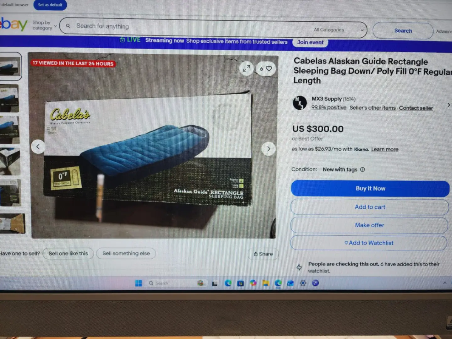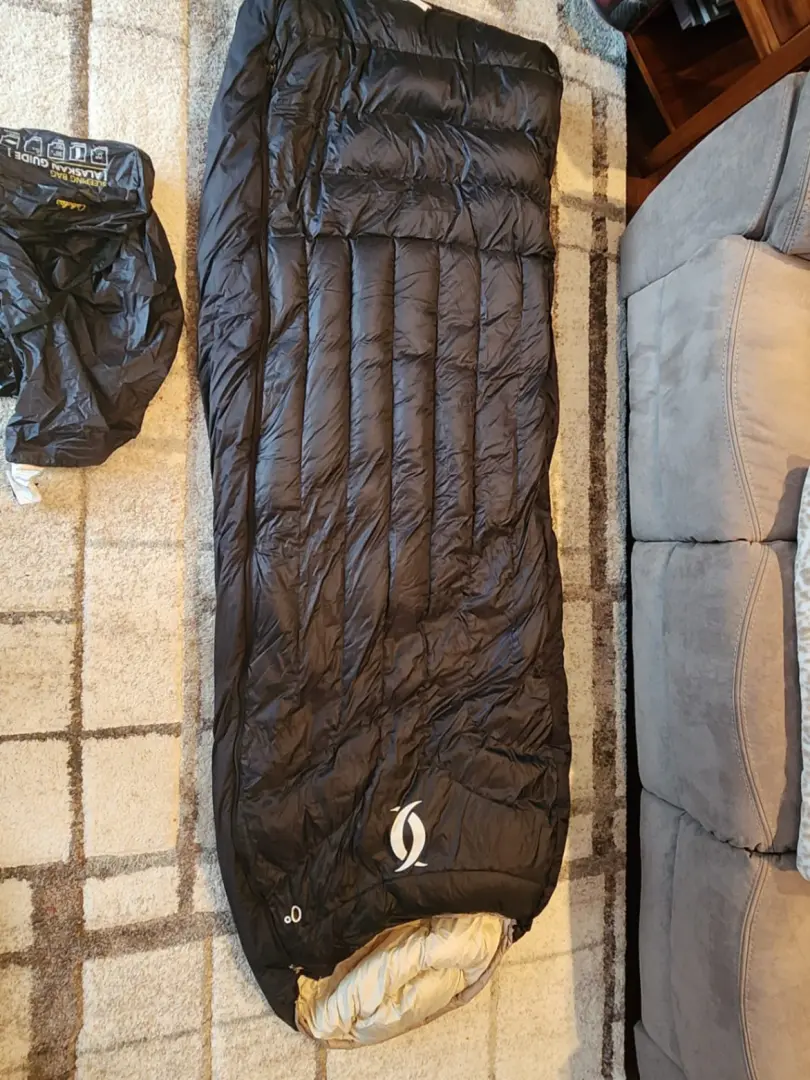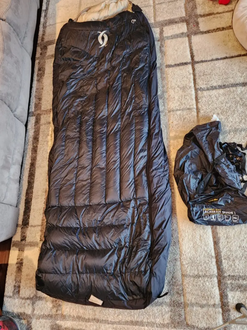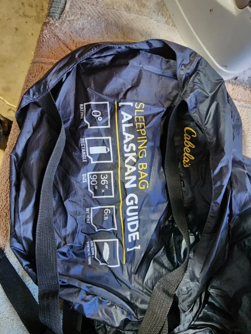 Cabelas Alaska Guide rectangular true 0 deg rated sleeping bag. 650 down plus synthetic fibers. 6 lbs...36X90 Used 2 nights. Super warm winter bag. Gong for $300 on ebay.